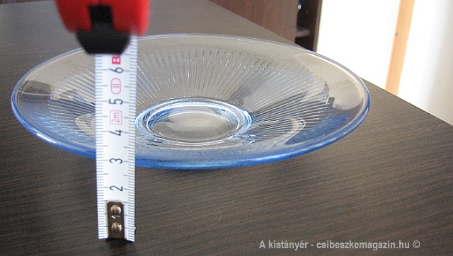 A kistányér átmérője – fenn mérve – 17 cm. Ez eddig ideálisnak mondható, azonban az alja, ami az asztalra felfekszik, csupán egy 7 cm-es kör. Ha ehhez figyelembe vesszük, hogy a kistányérunk felső széle és az asztal között 3 cm-es a távolság, akkor adja magát a következő: ez a tányér csak arra való, hogy dísznek tegyék a sütemény, vagy a gyümölcs alá, enni nagyon nem lehet belőle, mert valószínűleg elbillen!