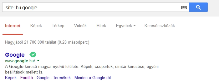 A Google kereső site operátora segítségével adott weboldalon belül kereshet szövegre, vagy pontos mondatokra. Hogy ne sértsünk meg senkit, saját oldalunkon mutatjuk be a kereséseket.